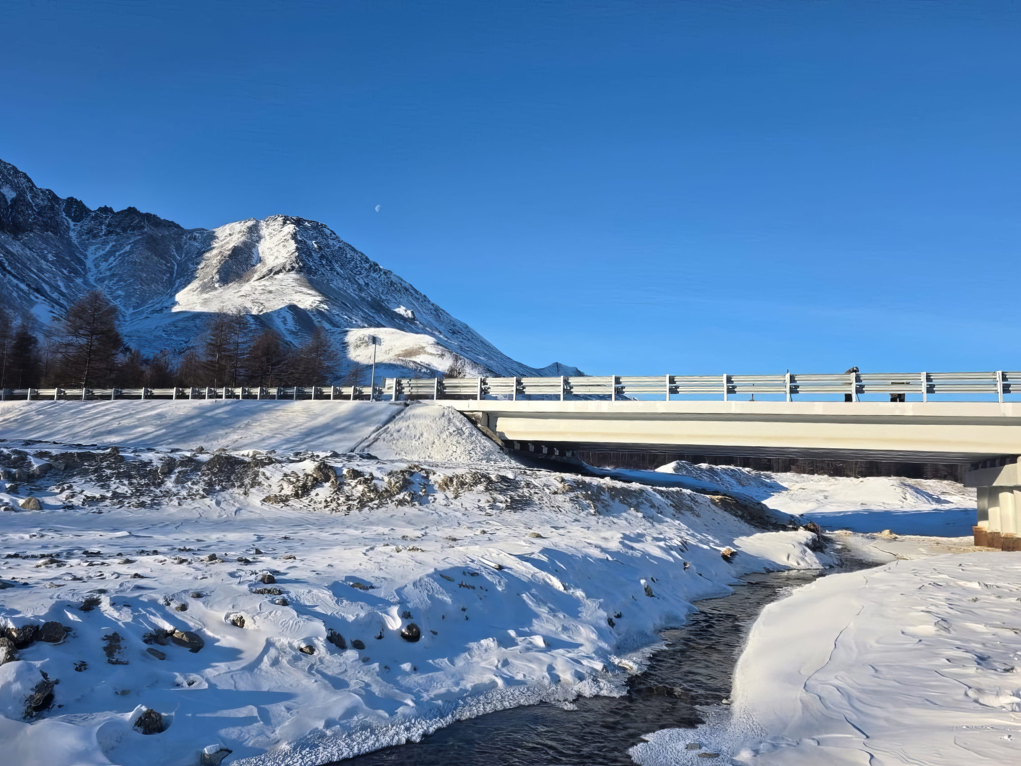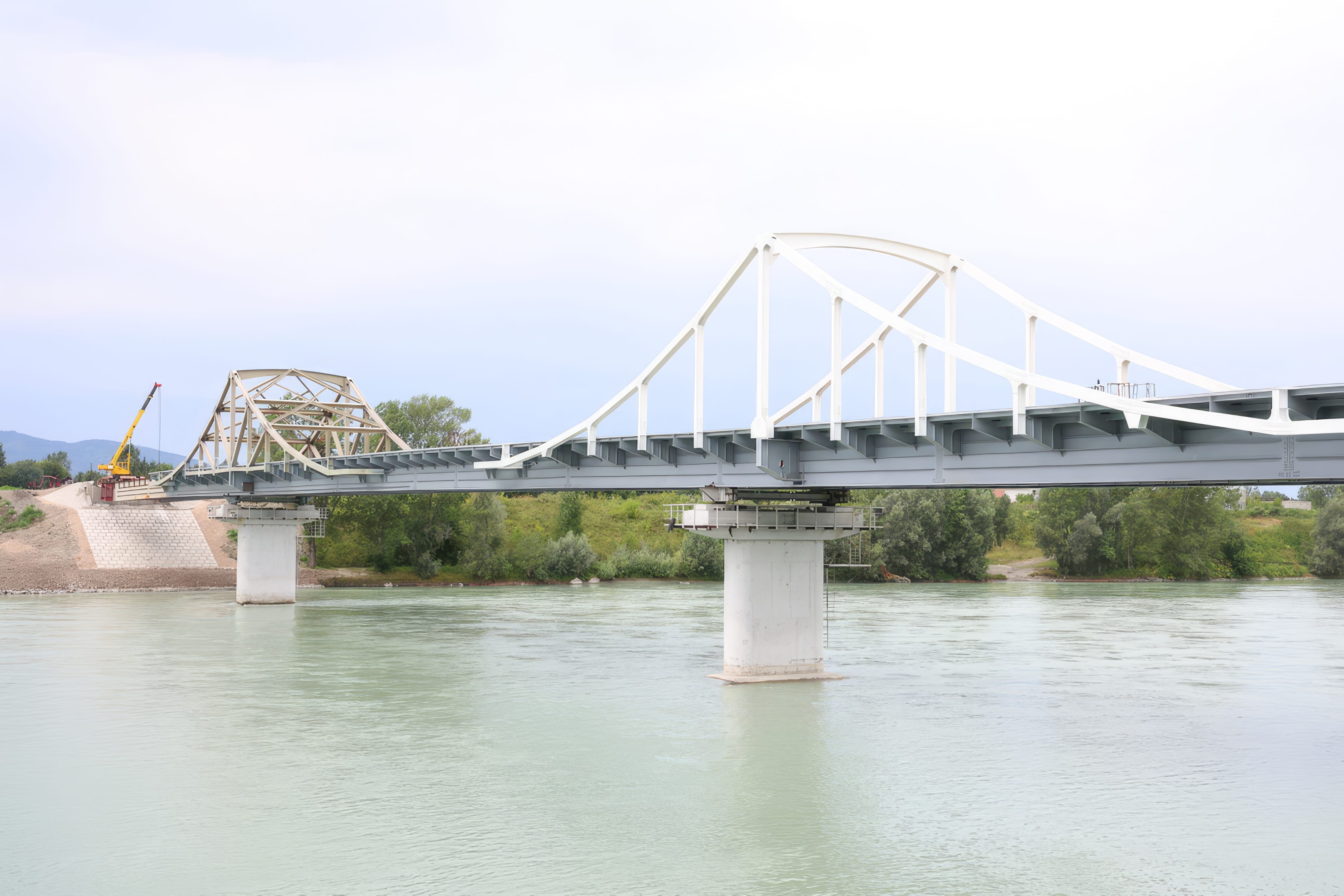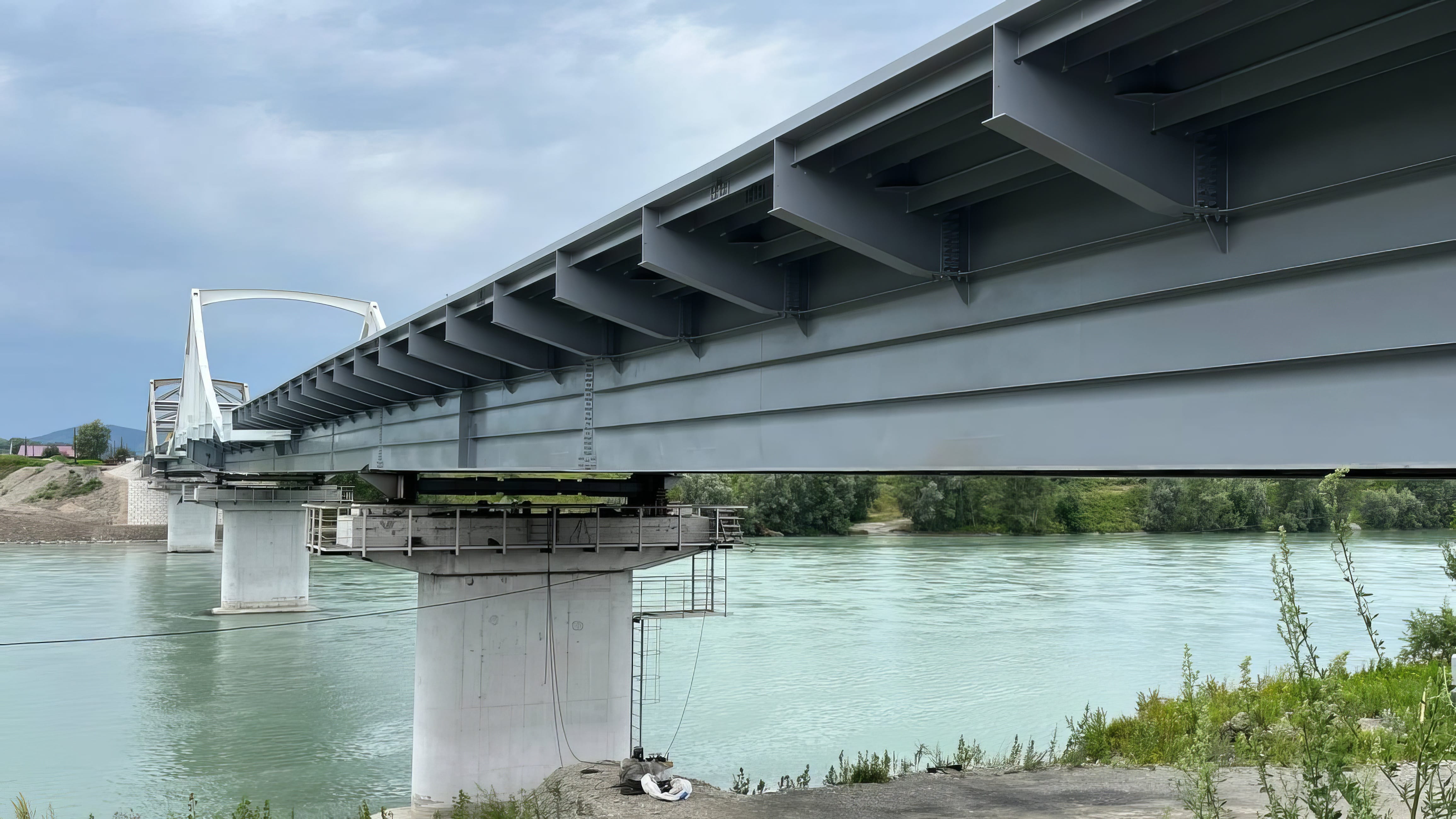 В 2025 году проведена надвижка пролетного строения, а ранее были возведены опоры. На мосту и подходах устроен нижний слой асфальтобетонного покрытия, проведены коммуникации, водоотводы, освещение. В текущем году будут обустроены пешеходные, барьерные ограждения и элементы, обеспечивающие транспортную безопасность.