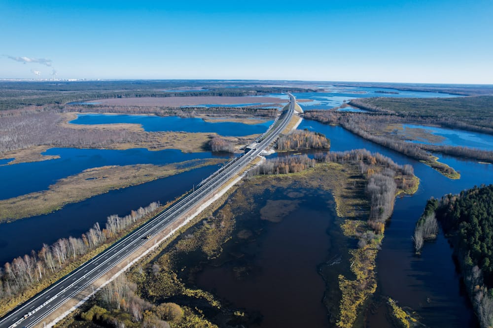 Одним из самых масштабных проектов минувшего года стало строительство уникального мостового перехода через реку Обь в районе города Сургута в Ханты-Мансийском автономном округе — Югре. Это весомый вклад в масштабную работу по обеспечению транспортной доступности опорных населенных пунктов и связности территорий нашей страны. Отметим, что в целом проект предусматривал возведение моста через реку Обь протяженностью порядка 1,8 тыс. пог. м, а также трех путепроводов, четырех малых мостов и свыше 43 км автодорог.