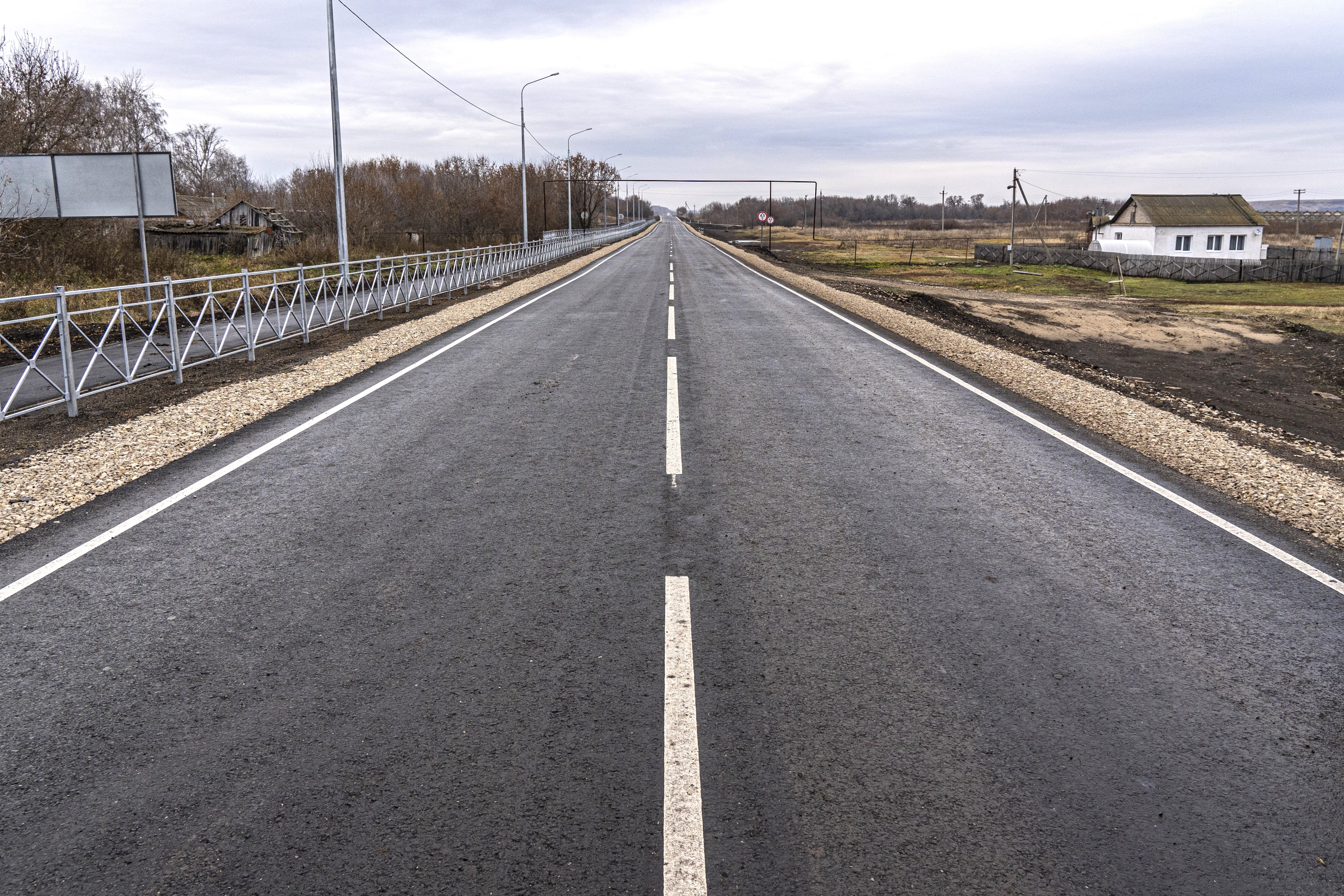 Особое внимание в ходе работ уделялось созданию безопасной дорожной инфраструктуры в поселке Ровный: вдоль проезжей части построили тротуары, установили опоры освещения, обустроили современные пешеходные переходы с автономными светофорами, оборудованными энергосберегающими LED-модулями. Также в населенном пункте устроили два остановочных пункта с подъездными карманами и новыми павильонами.